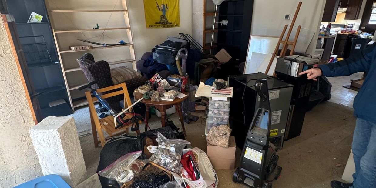 ✓ Boxes, clothing, and personal items left behind